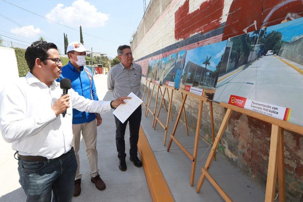 El gobernador Rutilio Escandón Cadenas inauguró obras de pavimentación de vialidades en la colonia Plan de Ayala, en el municipio de Tuxtla Gutiérrez, donde reiteró la convicción de su gobierno de seguir invirtiendo en la modernización del rostro urbano de la capital del estado, con el propósito de que estas acciones contribuyan a la seguridad pública y brinden bienestar y justicia social a la gente.