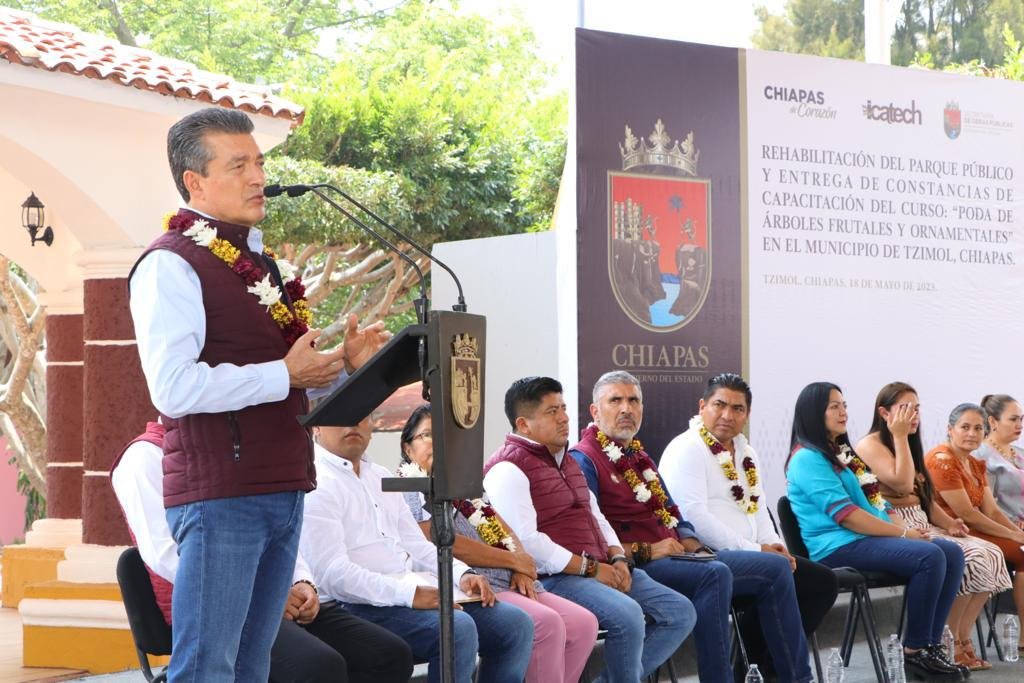 Al resaltar que en este gobierno se está construyendo obra pública para el bienestar y porvenir de todos los municipios de Chiapas, el gobernador Rutilio Escandón Cadenas entregó al pueblo de Tzimol el nuevo Parque Central, un espacio que fue rehabilitado y quedó digno y agradable para la convivencia familiar.