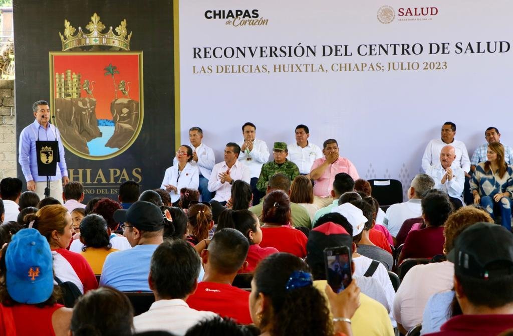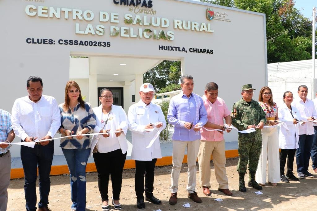 En el municipio de Huixtla, el gobernador Rutilio Escandón Cadenas inauguró la reconversión del Centro de Salud Rural de la colonia Las Delicias, donde destacó que en materia de salud Chiapas ha pasado del abandono a la transformación de los servicios médicos, desde infraestructura, medicamentos, personal médico y equipamiento, esto con el propósito de garantizar una atención digna y oportuna, con calidad y calidez.