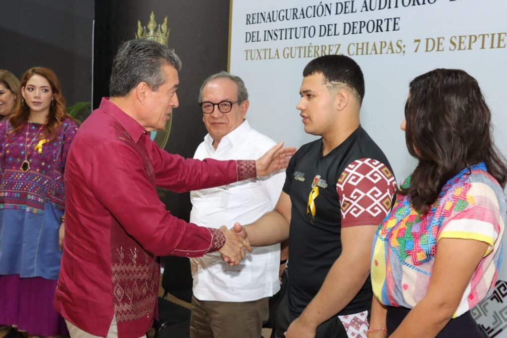 “Somos un gobierno que ha priorizado las inversiones y el apoyo al deporte, así que tienen todo mi apoyo, estaré al pendiente de que cuenten con todo para su preparación, porque si se mantienen estos grandes resultados abonaremos a que el deporte en Chiapas siga avanzando”, apuntó al precisar que la modernización de este auditorio y sala audiovisual favorecerá que se fortalezcan las actividades deportivas, culturales, artísticas y científicas, así como la convivencia entre las y los atletas.