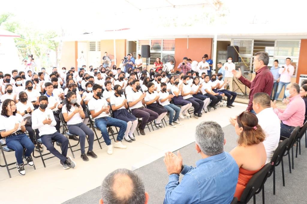 Finalmente, el director del plantel, Luis Antonio Cruz Alemán, manifestó su gratitud al Gobierno Estatal por esta infraestructura, en la que además de salones, les fueron entregadas herramientas tecnológicas y mobiliario educativo. “El alumnado tomaba clases en galeras ya que el plantel es relativamente joven, pero hoy se han mejorado las condiciones. Reconocemos esta inversión en beneficio de la comunidad escolar”.