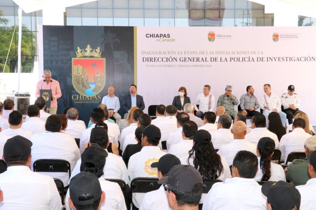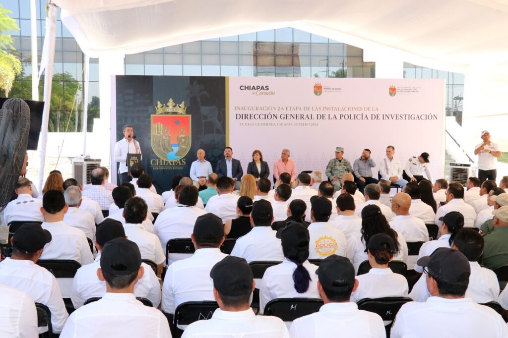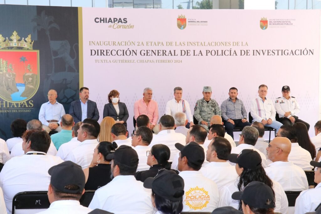 Al efectuar el corte de listón de esta nueva infraestructura y llevar a cabo un recorrido por sus instalaciones, Escandón Cadenas destacó que es una gran satisfacción ver que la Policía de Investigación ahora tiene las herramientas y los instrumentos para salvaguardar la vida, los bienes y la estabilidad de las y los chiapanecos, extendiéndoles una felicitación por lograr que un 90% de los elementos de esta corporación hayan obtenido el Certificado Único Policial.