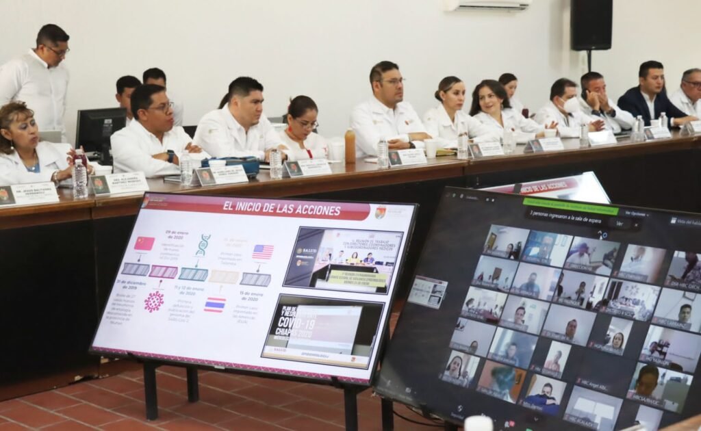 Al presidir esta reunión, el titular de la Secretaría de Salud del estado, doctor Pepe Cruz, subrayó que en el sector salud no hubo tregua para hacer frente a la pandemia, y desde un inicio se estableció un abordaje integral, considerando la parte normativa y la parte operativa.