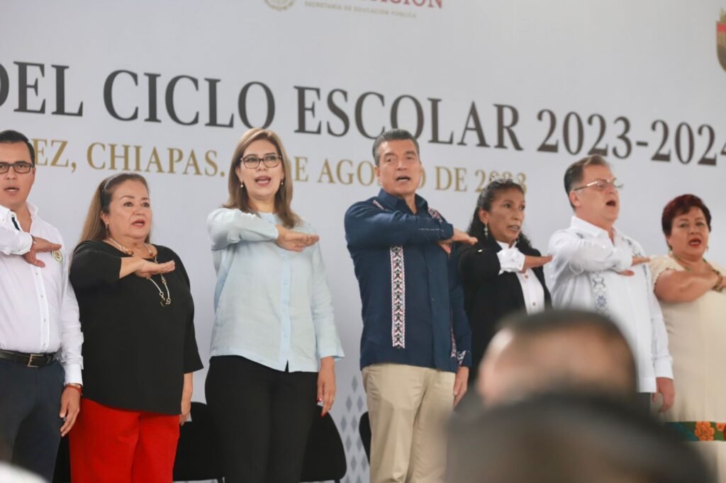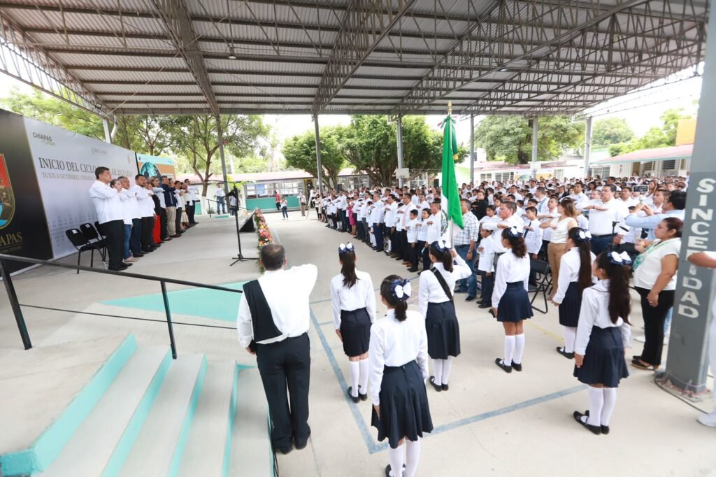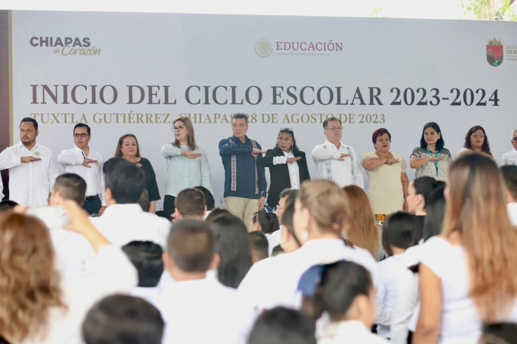Desde la Escuela Primaria del Estado Plan de Ayala, en Tuxtla Gutiérrez, el gobernador Rutilio Escandón Cadenas inauguró el Ciclo Escolar 2023-2024, donde refrendó su compromiso con la educación y deseó éxito a un millón 843 mil niñas, niños y jóvenes dependientes del sistema educativo en Chiapas.