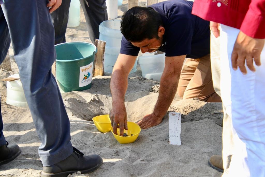 “Vamos a poner nuestro granito de arena y quiero comprometerme con ustedes a inaugurar una vez que ya queden listos los cuatro campamentos, para recorrerlos y cerciorarme de que puedan atender bien, con el respeto que le debemos, principalmente en esta región, a la tortuga marina que tanta riqueza trae a los mares”, dijo al tiempo de reconocer el trabajo del personal que está a cargo de los campamentos.