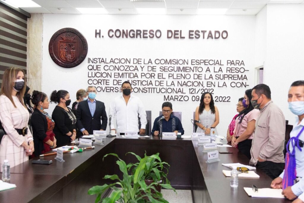 Tuxtla Gutiérrez, 9 de marzo de 2022.- La Sexagésima Octava Legislatura en el Congreso del Estado, instaló la Comisión Especial para que conozca y dé seguimiento a la resolución emitida por el pleno de la Suprema Corte de Justicia de la Nación (SCJN), en la Controversia Constitucional 121/2012, relativo a los límites territoriales entre Chiapas y Oaxaca.