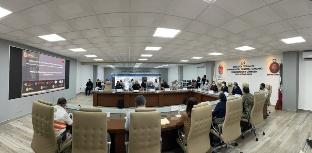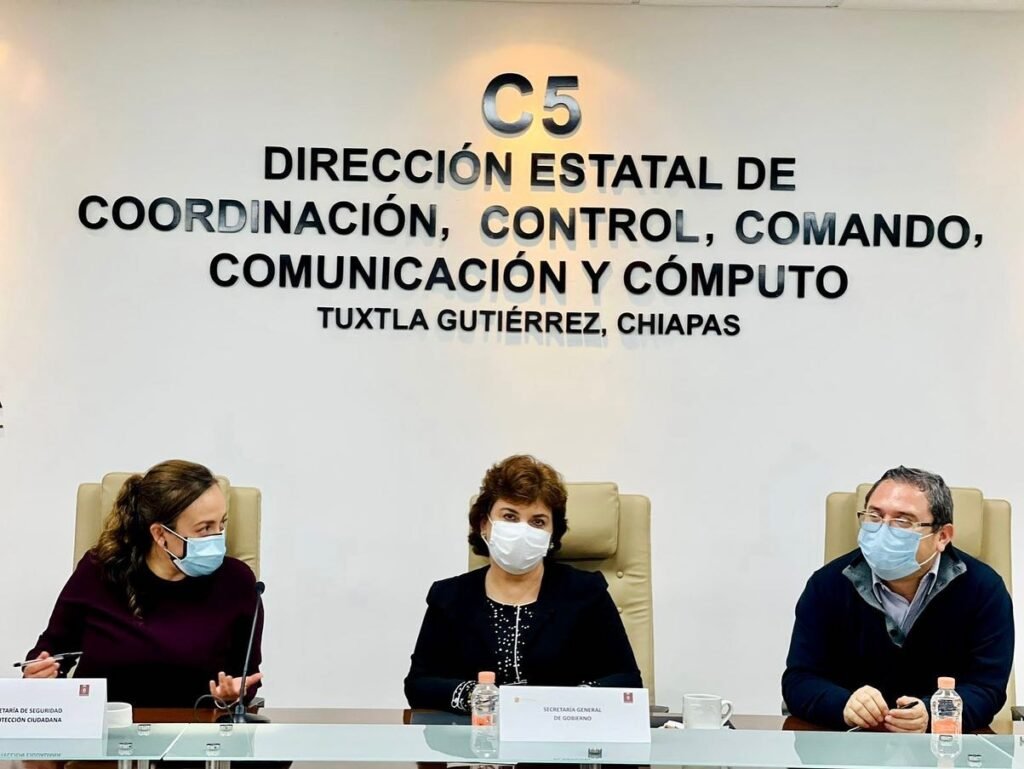 La reunión, que tuvo como sede las instalaciones de la Dirección Estatal de Coordinación, Control, Comando, Comunicación y Cómputo (C5), estuvo encabezada por la Secretaria General de Gobierno del Estado (SGG), Cecilia Flores Pérez; el Consejero Presidente del Instituto de Elecciones y Participación Ciudadana (IEPC) de Chiapas, Oswaldo Chacón Rojas y la Secretaria de Seguridad y Protección Ciudadana (SSyPC), Gabriela Zepeda Soto.