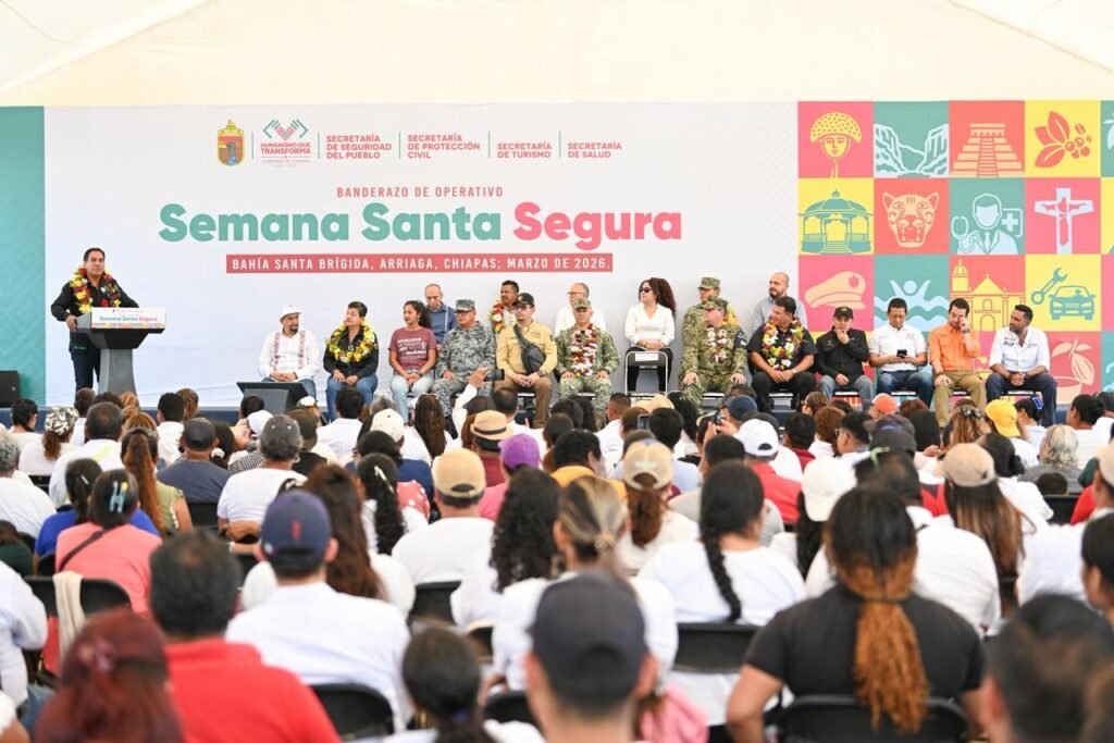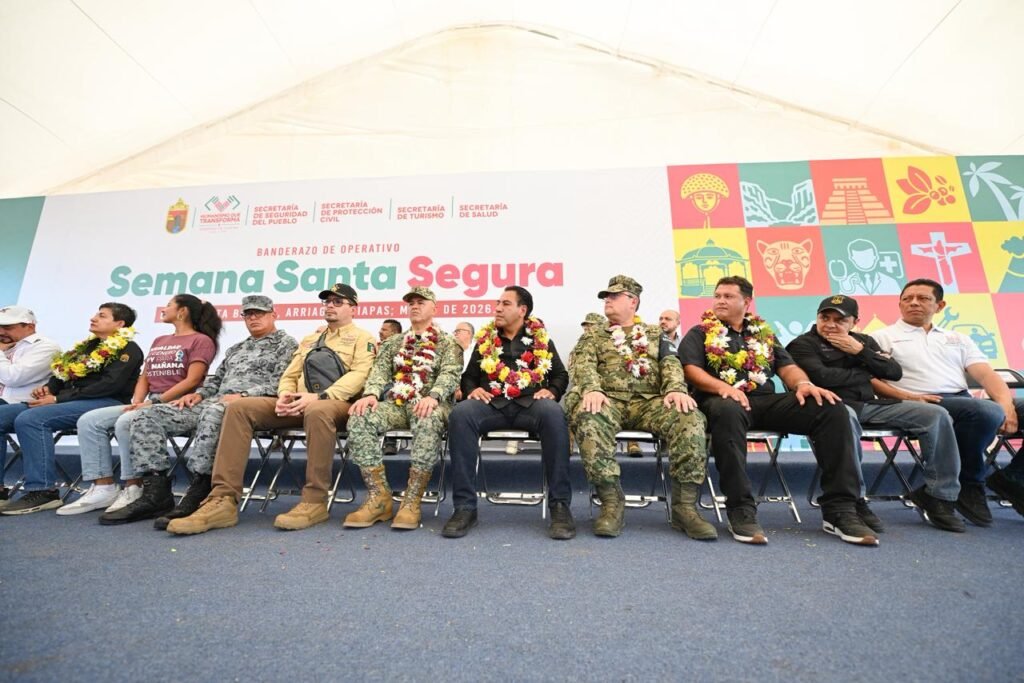 Posteriormente, el titular de la casa de la justicia junto al ejecutivo del estado, participaron en el “Banderazo del Operativo de Semana Santa Segura 2026”, con el cual diversas instituciones y corporaciones, encabezadas por la Secretaría de Seguridad del Pueblo, realizarán estrategias y desplegarán operativos para salvaguardar a las y los vacacionistas, así como al pueblo chiapaneco.