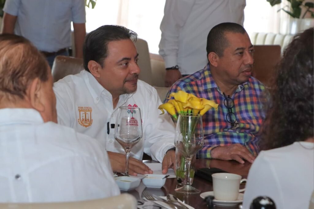 Como parte de su gira de trabajo por la región del Soconusco, el magistrado presidente del Tribunal Superior de Justicia y del Consejo de la Judicatura del Estado, Juan Carlos Moreno Guillén, asistió a una reunión con integrantes del Colegio de Notarios de Tapachula, realizada en esa ciudad fronteriza.