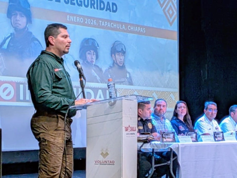 Tuxtla Chico, Chiapas a 08 de enero de 2026. El compromiso con la seguridad es fundamental para seguir fortaleciendo un municipio con desarrollo, expresó el presidente municipal, Julio Enrique Gamboa Altúzar al asistir como invitado a la capacitación para la prevención de extorción dirigido a mandos y personal de seguridad llevada a cabo en el Teatro de la Ciudad de Tapachula.