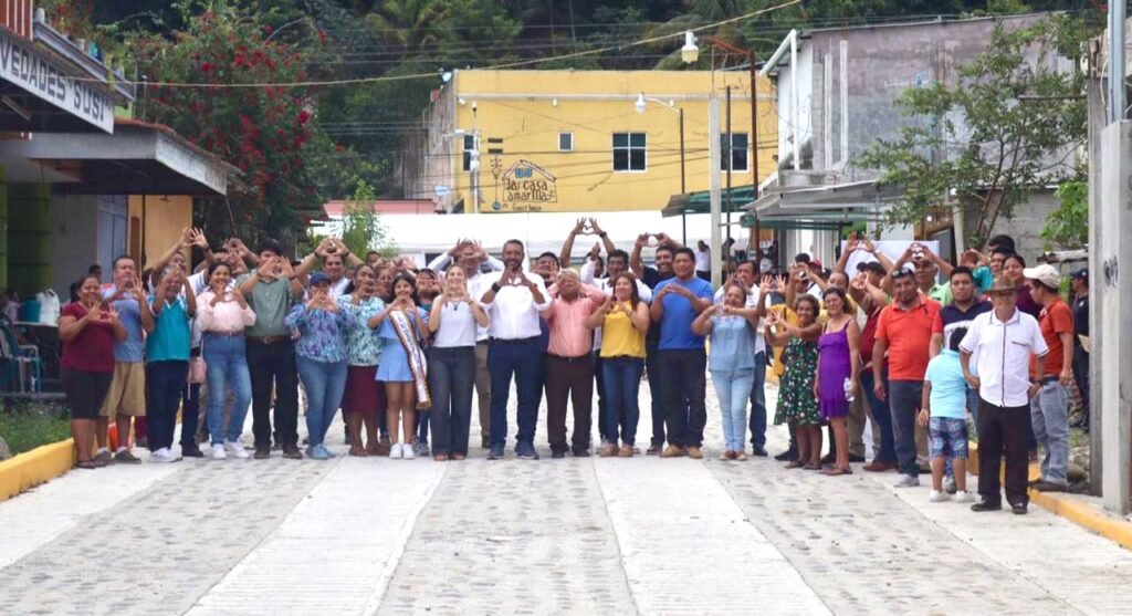 Tuxtla Chico, Chiapas a 18 de septiembre de 2025. Con alegría y unidad, las familias tuxtlachiquenses celebraron la inauguración de la construcción de pavimentación mixta en calle Aguascalientes y Baja California Norte del Barrio la Garita en Frontera Talismán junto al presidente Municipal, Julio Enrique Gamboa Altúzar.