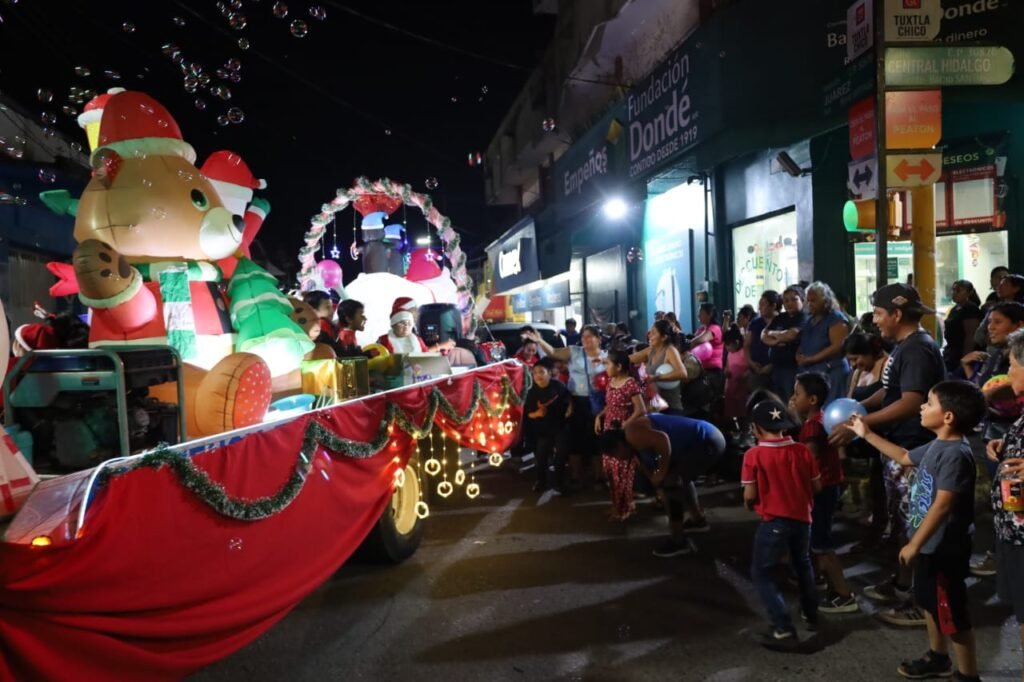 Tuxtla Chico, Chiapas .- El espíritu navideño, la alegría y diversión desbordaron las principales calles del municipio con la edición 2025 de la Caravana Navideña, el Gobierno Municipal de Tuxtla Chico y el SMDIF organizaron un recorrido lleno de color, música y sorpresa para todos los niños.