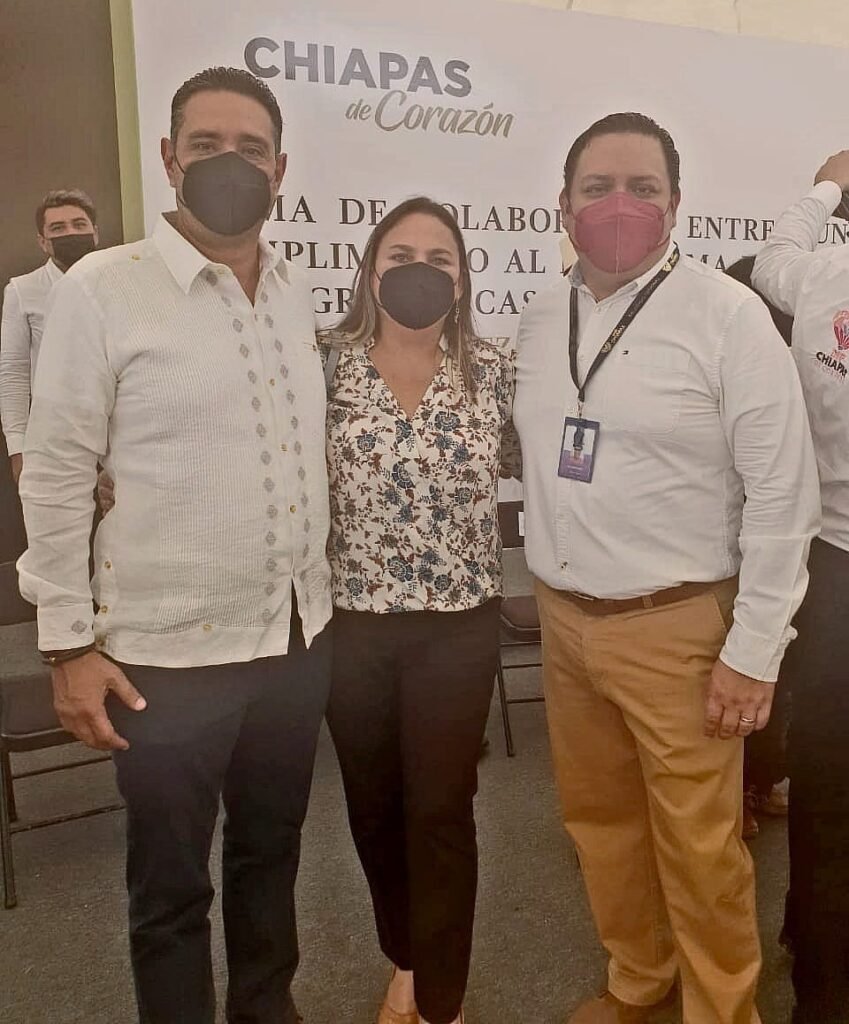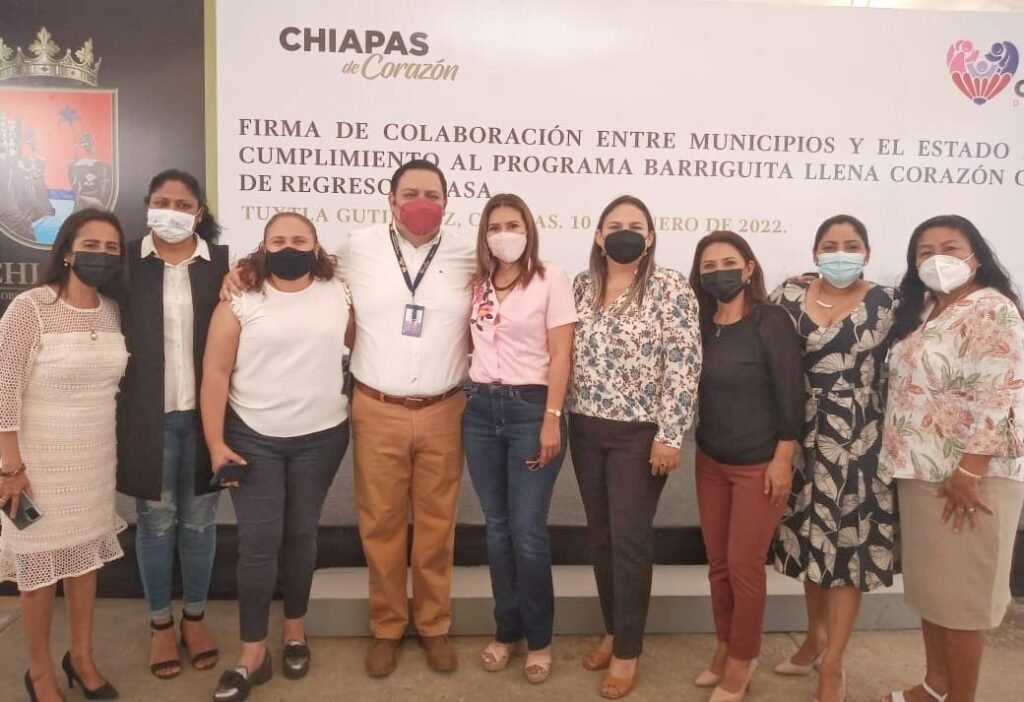 Tuxtla Chico, Chiapas a 11 de enero de 2022. El alcalde, Julio Enrique Gamboa Altúzar y la presidenta Honoraria del Sistema DIF Tuxtla Chico, Karla del Toro de Gamboa, asistieron a la Firma de Colaboración para dar Cumplimiento al Programa ‘Barriguita Llena Corazón Contento de Regreso a Casa’, el cual fue presidido por el gobernador del estado, Rutilio Escandón Cadenas.