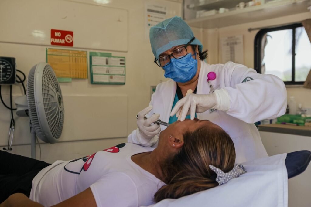 A través de la Jornada de Salud para la Detección Oportuna de Enfermedades en la Mujer, se instaló una unidad médica móvil del Programa IMSS-BIENESTAR en la que se hicieron pruebas de Papanicolaou y revisiones dentales; en total se realizaron 820 consultas y atenciones.