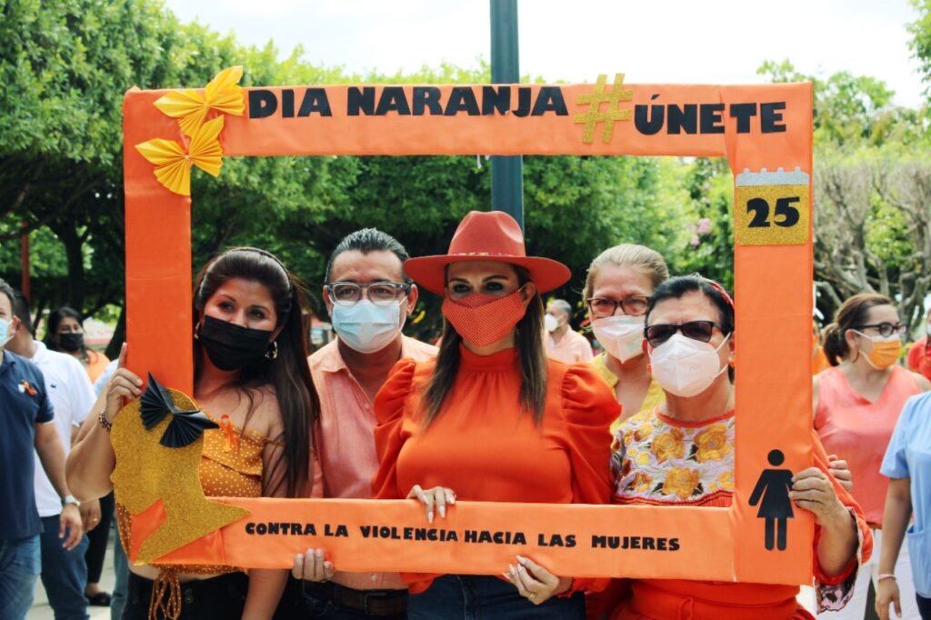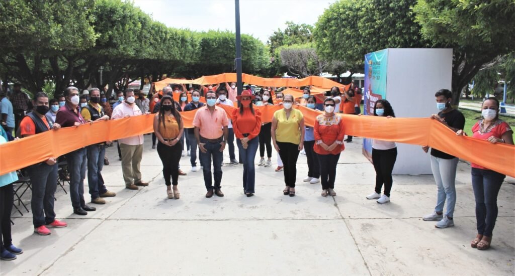 La presidenta municipal Rosa Irene Urbina Castañeda, hizo un recorrido por los módulos que fueron instalados en el parque de esa comunidad ubicada al sur de la ciudad de Tapachula, en donde como ocurre el día 25 de cada mes, se recordaron las acciones para erradicar la violencia contra las mujeres y se formó un moño “naranja”, distintivo en esta fecha, para concientizar que no se debe permitir ningún tipo de violencia física, laboral, sexual, entre otras contra el sector femenino.