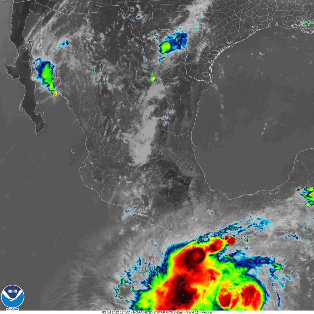 Las bandas nubosas de la tormenta tropical están ocasionando nublados, lluvias y oleaje elevado sobre la costa de Chiapas. Durante el domingo el centro de la tormenta se aproximará a una distancia de 280 km de la desembocadura del río Suchiate. Sus bandas nubosas cubrirán los municipios de Suchiate, Tapachula, Mazatán, Huixtla, Villa Comaltitlán, Acapetahua, Mapastepec, Pijijiapan, Tonalá y Arriaga, informó la Comisión Nacional del Agua (Conagua).