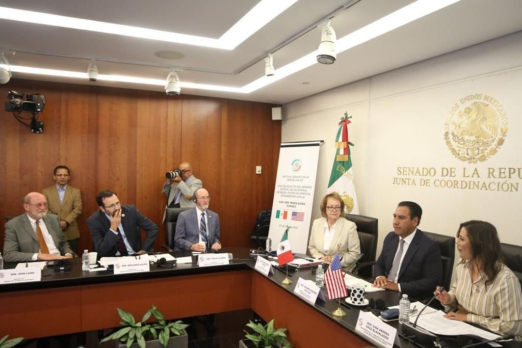 El presidente de la Junta de Coordinación Política (Jucopo) del Senado de la República, Eduardo Ramírez Aguilar recibió a una delegación del Senado Estatal de California, Estados Unidos de América, encabezada por la senadora María Elena Durazo.