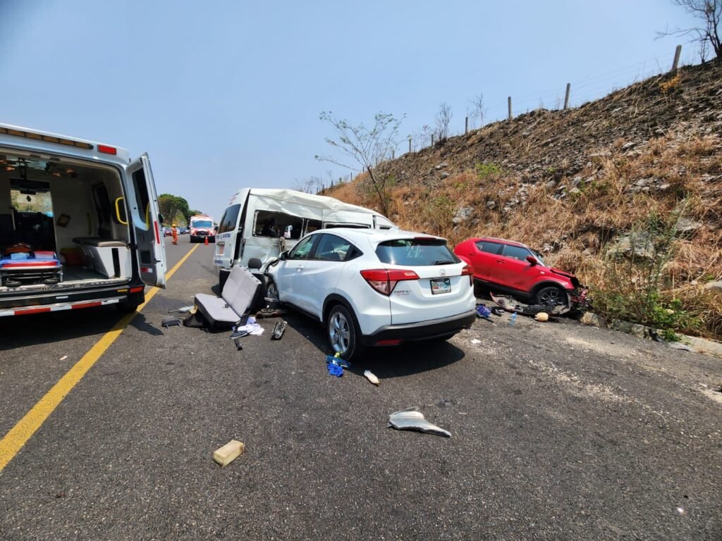 Los primeros datos indican que en el accidente, que se se suscitó alrededor de la 12:30 horas de este miércoles 10 de mayo, estuvieron involucrados una Urvan de transporte y dos carros particulares.