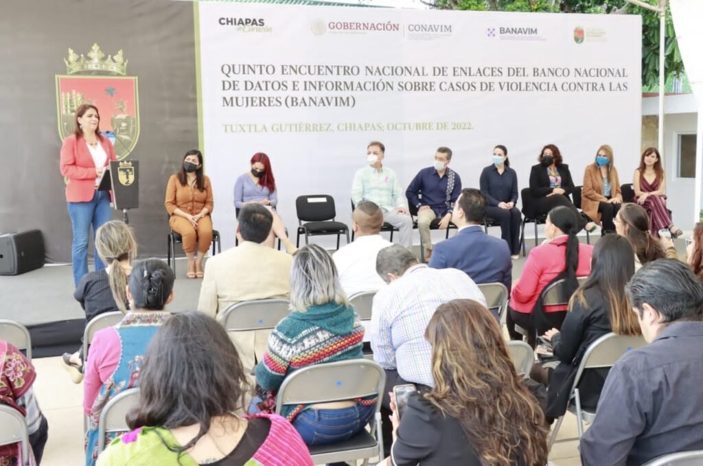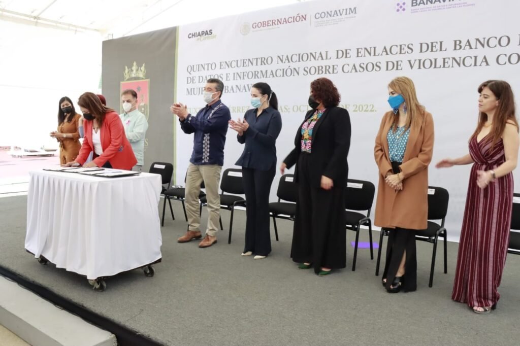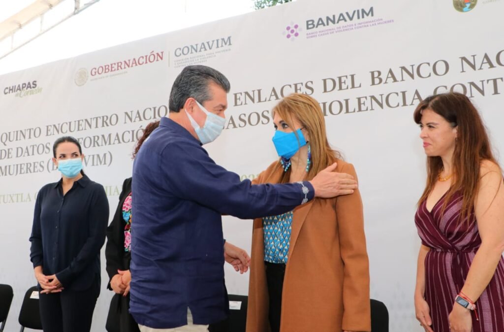 Al participar en el 5º Encuentro Nacional de Enlaces del Banco Nacional de Datos e Información sobre Casos de Violencia contra las Mujeres (Banavim), el gobernador Rutilio Escandón Cadenas sostuvo que en Chiapas se hace causa común entre las autoridades de los tres Poderes del Estado, con el objetivo de garantizar a las mujeres el respeto de sus derechos individuales y colectivos, bienestar y justicia, una mayor participación en los ámbitos político, económico y social, y espacios seguros para una vida libre de violencia.