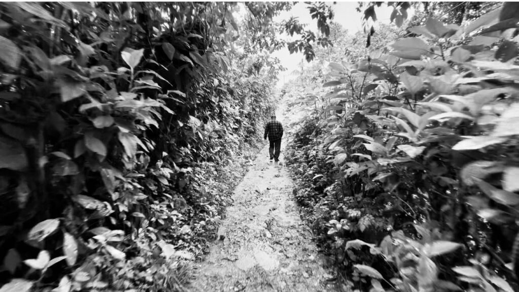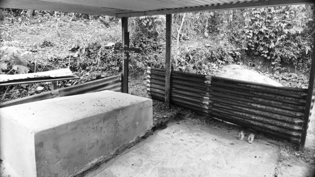 El espacio lo conocimos porque fue donde le tomaron la primera foto a Petrona, y que circuló el 6 de abril, la madrugada el día de la tragedia. En la casa abandonada se encuentra una mujer con sus hijos, limpiando el lugar, esquivan la mirada, se esconden, dicen no saber hablar español, solo tzeltal, ser familiares de Petrona, pero que ellas no vieron nada, porque viven más abajo, imposible no escuchar gritos a media noche, en el silencio de este bosque, donde las casas se ubican en medio de solares y solo los chuchos y animales de traspatio hacen ruido.