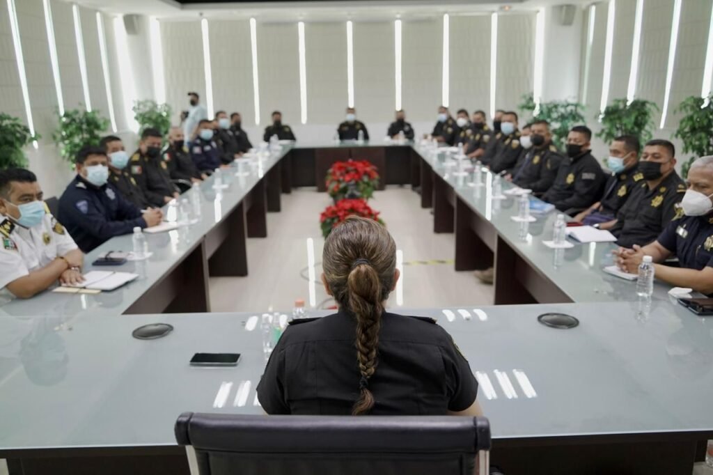 Tuxtla Gutiérrez, Chiapas.- La comisaria general Gabriela Zepeda Soto sostuvo una reunión de trabajo con comandantes de sector de la Policía Estatal Preventiva (PEP) de la Secretaría de Seguridad y Protección Ciudadana (SSyPC), en la cual reconoció el trabajo que realizan todos los días para garantizar la seguridad y el bienestar de las y los chiapanecos.
