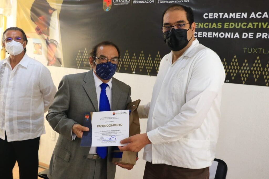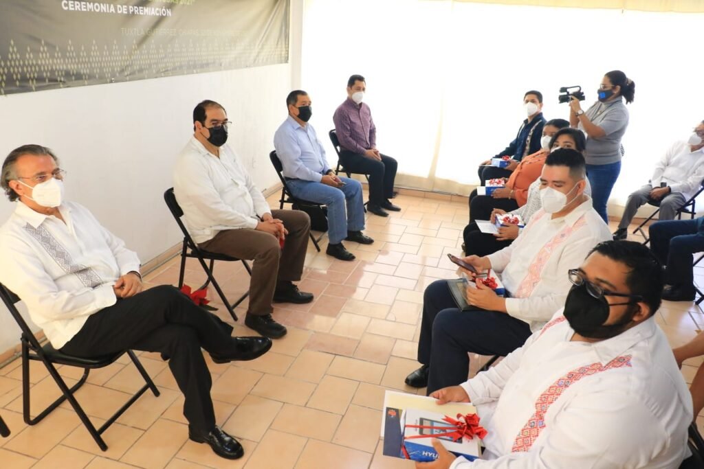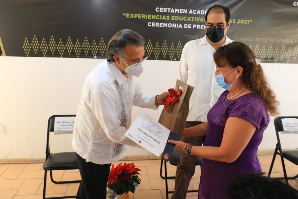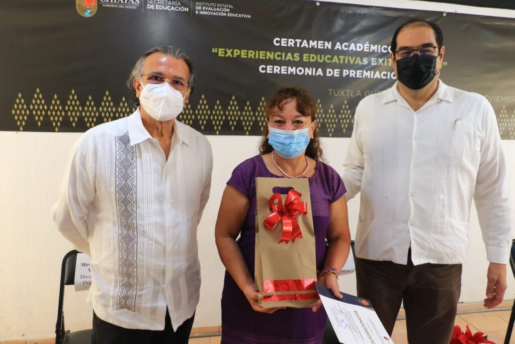 Tuxtla Gutiérrez, Chiapas.- El Instituto Estatal de Evaluación e Innovación Educativa (Ineval), realizó este martes la premiación del Certamen Académico: “Experiencias Educativas Exitosas 2021”, acto encabezado por el subsecretario de Planeación Educativa, José Francisco Oliva Gómez, en representación de la Secretaría de Educación, y el director general del Ineval, Roberto David Vázquez Solís.