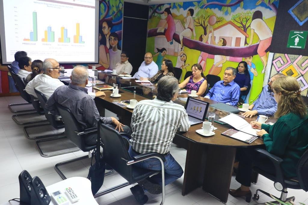 Tuxtla Gutiérrez, Chiapas.- En reunión de trabajo en la Sala de Juntas de la Secretaría de Educación, el director general del Instituto Estatal de Evaluación e Innovación Educativa (Ineval), Roberto David Vázquez Solís, presentó a la secretaria Rosa Aidé Domínguez Ochoa los resultados del proceso de “Valoración Diagnóstica Inicial, Intermedia y Final”, del nivel Medio Superior, correspondiente al ciclo escolar 2022-2023.