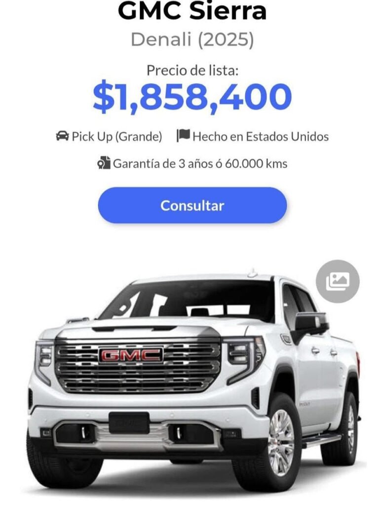 El vehículo es una GMC Sierra Denali con un precio de lista de 1 millón 858 mil 400 pesos, cuyo monto rebasa por mucho la capacidad de adquisición con el sueldo del alcalde.