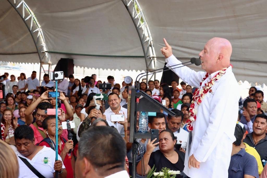 Ante más de 6 mil personas que gritaban al unísono “gracias, gracias, por los servicios”, el encargado de la política sanitaria estatal destacó que su quehacer en la salud de Chiapas está alineado a las políticas públicas del gobernador del estado, Rutilio Escandón Cadenas, de velar por los que menos tienen y brindarles programas y estrategias que mejoren su calidad de vida, como es el acercar los servicios médicos especializados.