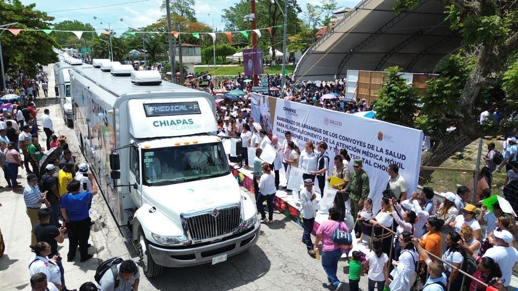 Acompañado del presidente municipal de Palenque, Jorge Cabrera Aguilar, el doctor Pepe Cruz aseveró que los 10 convoyes de la salud, compuestos por 140 camiones, son un refuerzo de los servicios fijos, ya que estas unidades médicas móviles tienen integrados más de 12 servicios altamente especializados, dirigidos a niños, jóvenes, adultos y adultos mayores.