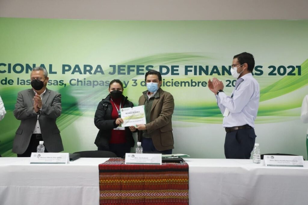 A la clausura de este Seminario Nacional para Jefes de Finanzas 2021 estuvieron presentes: la Maestra Mónica Alejandra Montano López, Titular de la Unidad de Riesgos Financieros y Actuariales; el Doctor Enrique Ureña Bogarín, Titular del Órgano de Operación Administrativa Desconcentrada IMSS Chiapas; la Maestra Nelly María Aguilar Zenteno, Jefa de Servicios de Finanzas del OOAD en Chiapas; y el Ingeniero Mariano Alberto Díaz Ochoa, Presidente Municipal de San Cristóbal de las Casas.