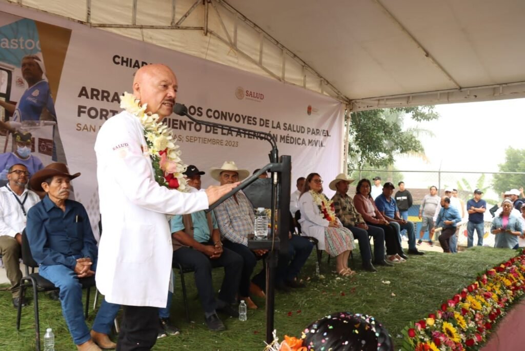 San Fernando, Chiapas; 03 de septiembre de 2023.- La salud no se detiene, sigue avanzando hasta llegar a cada rincón de Chiapas; municipio que visito, municipio donde su gente es beneficiada con más y mejores servicios médicos a su alcance, haciendo más con menos, tal como lo dicta la Cuarta Transformación, manifestó el secretario de Salud estatal, doctor Pepe Cruz, durante el despliegue de los Convoyes de la Salud desde San Fernando.