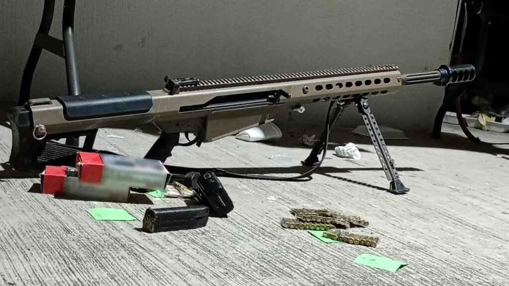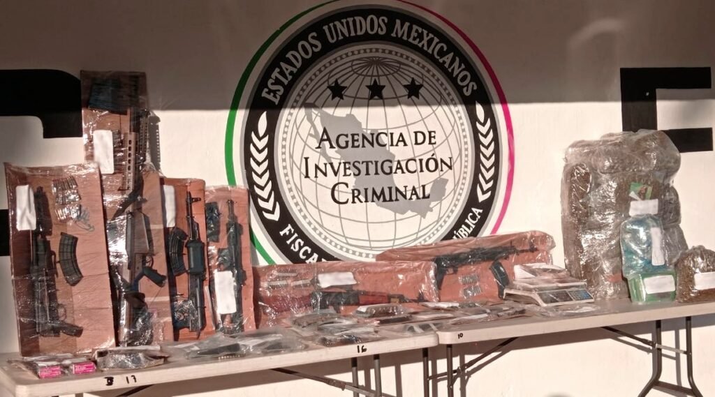Derivado de lo anterior, detuvieron a estas dos personas y aseguraron un fusil Barrett, cinco armas largas y una corta; 28 cartuchos y tres cargadores, 400 cartuchos aparte y 14 cargadores de diferentes calibres, así como bolsas de plástico con marihuana, cocaína y metanfetamina.