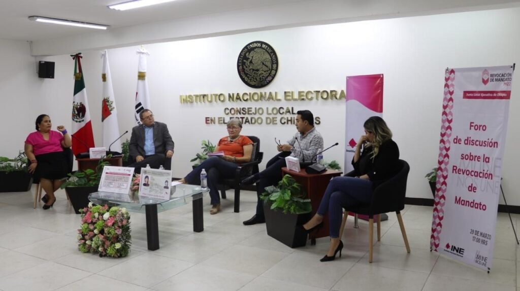 El día de hoy, la Junta Local del Instituto Nacional Electoral (INE) en Chiapas, llevó a cabo el Primer Foro Estatal de Discusión sobre la Revocación de Mandato, con la participación de panelistas expertos en el tema de acuerdo a su perfil profesional, quienes expusieron sus razones a favor y en contra de realizar este ejercicio de participación ciudadana.