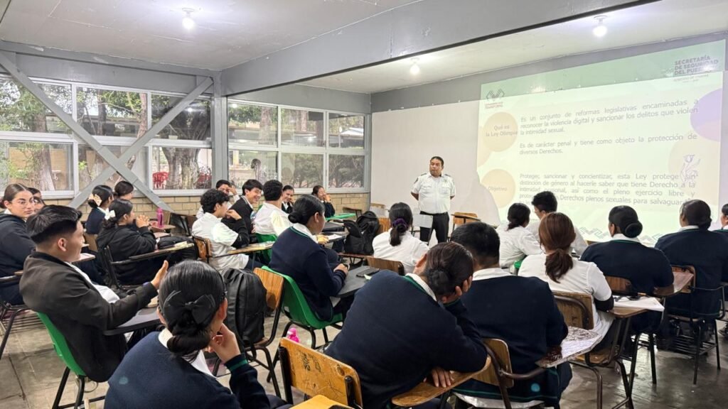 Con el objetivo de informar, proteger y prevenir conductas que afecten la salud física y emocional de las y los jóvenes, la Secretaría de Seguridad del Pueblo (SSP), a través de la Unidad de Prevención del Delito y Política Criminal en coordinación con el área de Difusión, impartió pláticas sobre “Violencia Digital (Ley Olimpia) y Adicciones” a jóvenes estudiantes del Colegio Nacional de Educación Profesional 070 (CONALEP) y de la Secundaria Técnica 05 del municipio de Comitán de Domínguez.