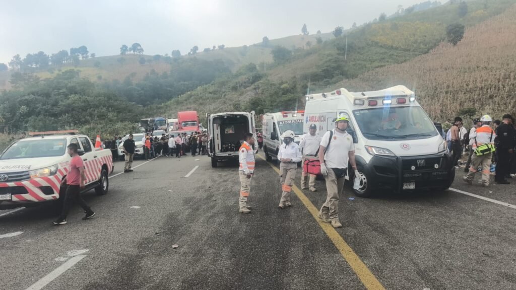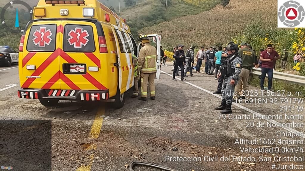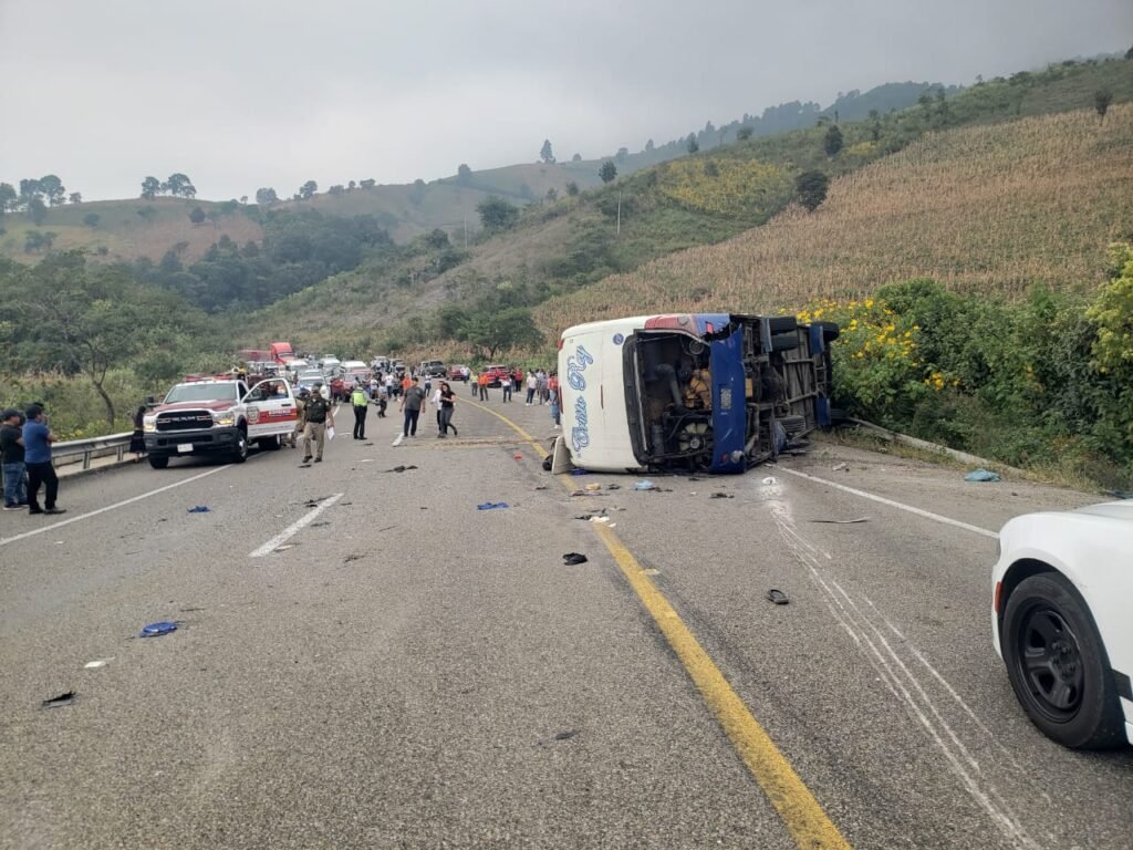 Derivado de la volcadura de un autobús en el km 26 de la autopista San Cristóbal – Tuxtla Gutiérrez, ocasionada por fallas en el sistema de frenos y el estallido de una llanta trasera, equipos de emergencia brindaron atención en el lugar, donde se registraron lamentablemente dos personas fallecidas y 22 lesionados.