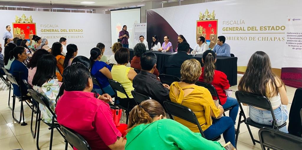 Tuxtla Gutiérrez, Chiapas, 16 de junio de 2023.- La Fiscalía General del Estado (FGE), la Fiscalía de Delitos Electorales (FDE), en conjunto con el Instituto de Elecciones y Participación Ciudadana (IEPC), el Tribunal Electoral del Estado de Chiapas (TEECH) y el H. Congreso del Estado, impartió una conferencia sobre prevención de delitos de Violencia Política contra las Mujeres en Razón de Género dirigida a las y los servidores públicos municipales de la región Centro.