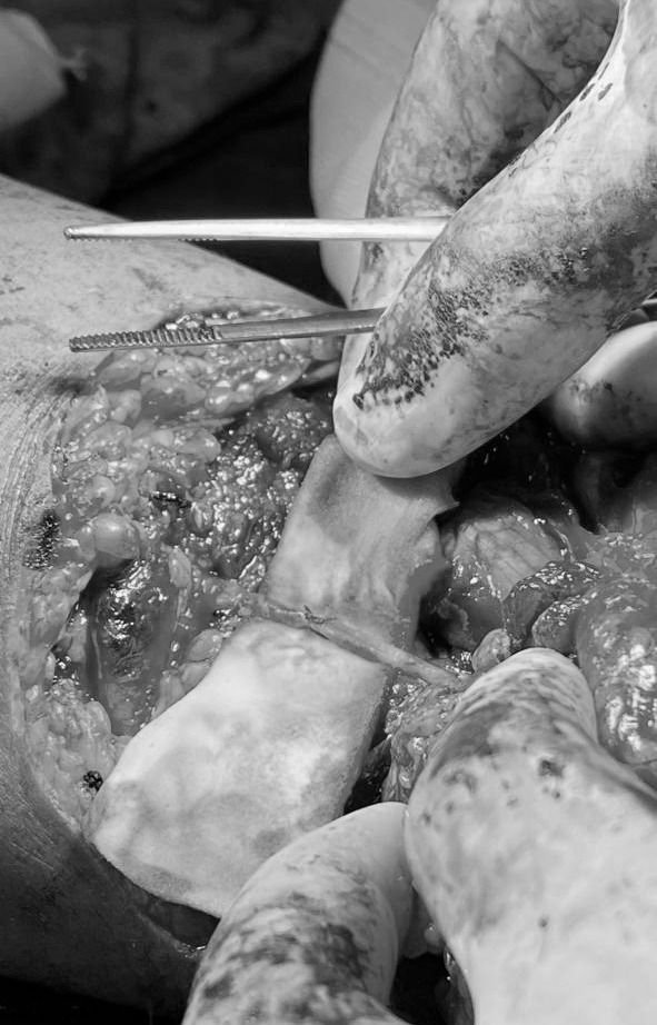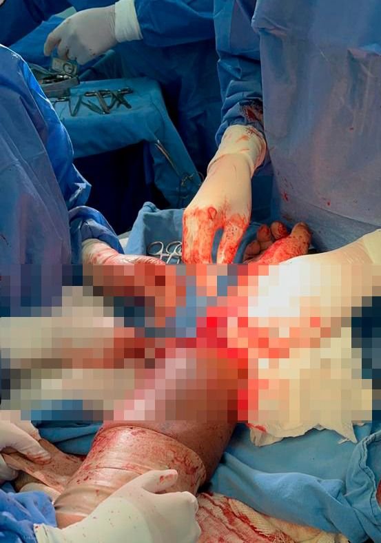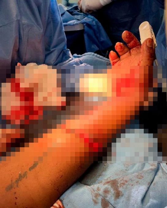 El paciente llegó con la extremidad cortada, parte de ella se sostenía únicamente con la piel; mostraba graves lesiones, pues los vasos sanguíneos, músculos y tendones estaban seccionados, por lo que de inmediato se practicó el procedimiento quirúrgico para frenar el sangrado, evitándose el traslado emergente, ya que por la gravedad del cuadro podría perder la vida.