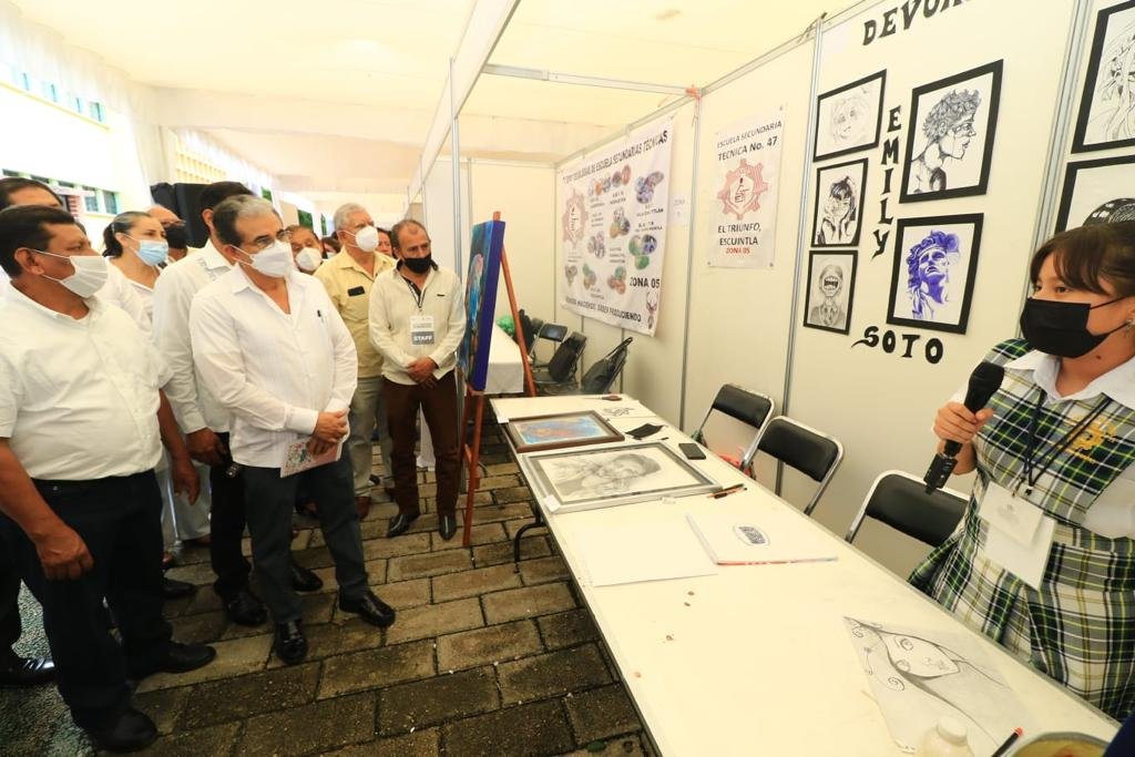 La inauguración del evento estuvo a cargo del coordinador general de Administración Federalizada, Hernán López Vázquez, quien, en representación de la Secretaría de Educación en el estado, ofreció el saludo a los alumnos, docentes y directores participantes, felicitándolos por el empeño mostrado en la realización de estas actividades que desarrollan habilidades productivas en los alumnos de secundaria.