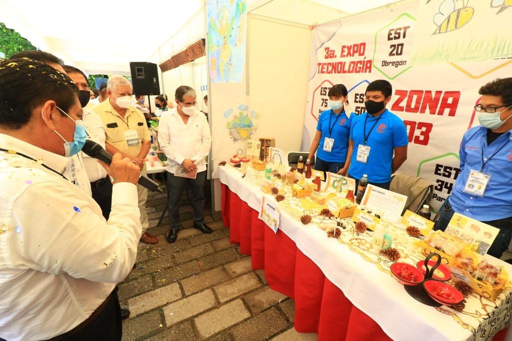 Posteriormente se procedió al recorrido de los 22 módulos, donde los funcionarios presenciaron y degustaron los productos elaborados en los diferentes talleres por los alumnos de secundarias técnicas como son: electricidad, electrónica, apicultura, pecuaria, agricultura, industria de alimentos y soldadura, entre otros.