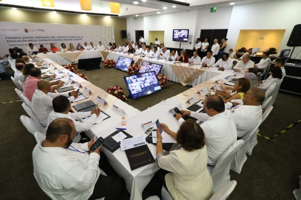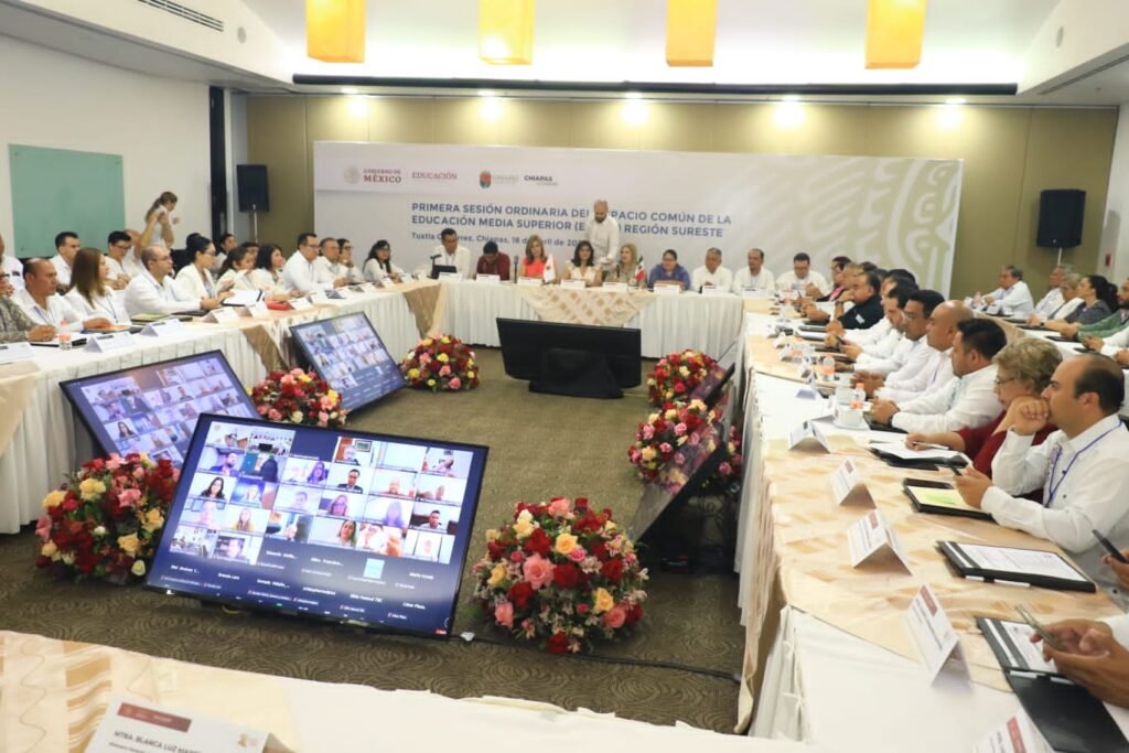 Tuxtla Gutiérrez, Chiapas.- El estado de Chiapas fue sede de la Primera Sesión Ordinaria Región Sureste del Espacio Común de la Educación Media Superior (ECEMS) 2023, en la que hicieron acto de presencia las autoridades educativas de los estados de Campeche, Guerrero, Oaxaca, Quintana Roo, Tabasco, Veracruz y Yucatán.