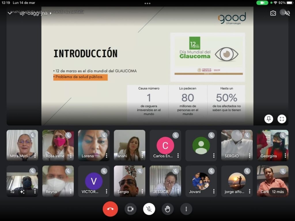Tapachula, Chiapas.- Con el objetivo de promover la identificación de algunos de los factores que pueden aumentar el riesgo de sufrir glaucoma entre la población, se conmemoró el “Día Mundial del Glaucoma”, con una plática virtual.
