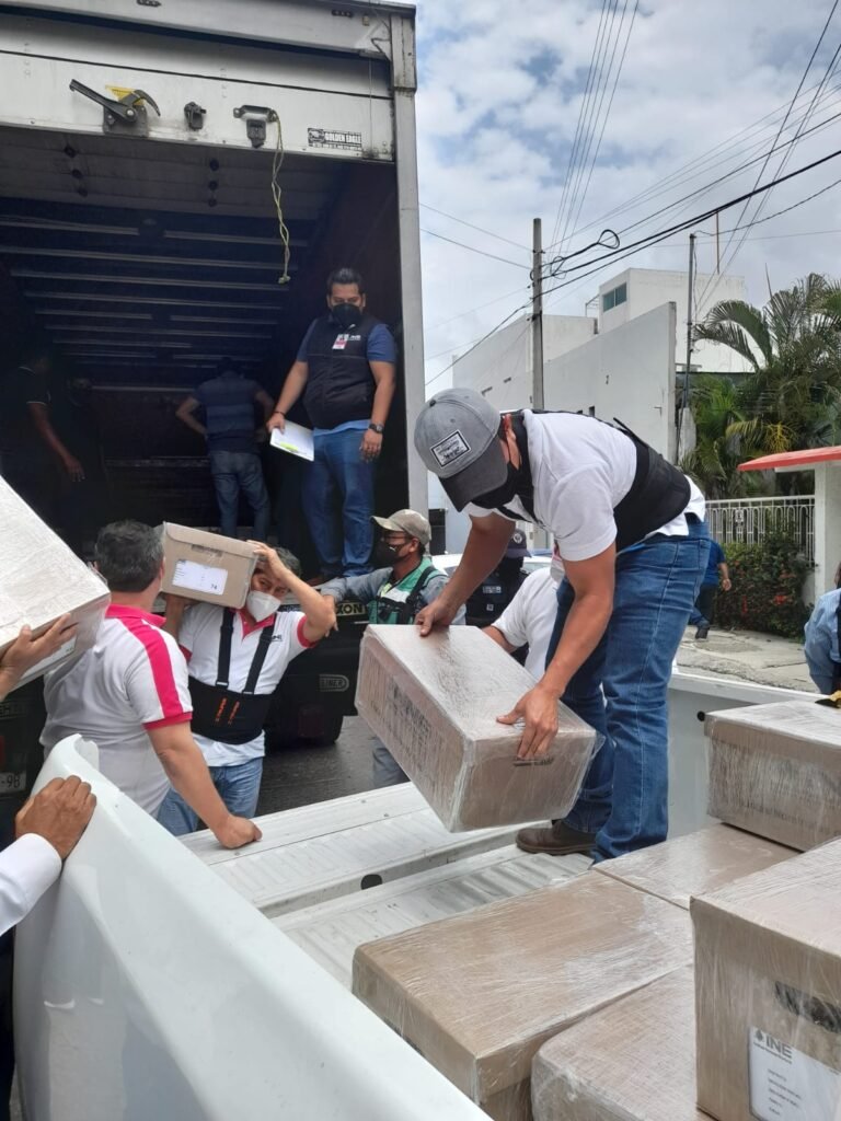 Desde la sede estatal y de manera simultánea, las cajas fueron entregadas de manera directa a las y los vocales ejecutivos, testificando consejeras y consejeros de las 13 juntas distritales; éstos entregarán un impreso a las representaciones de partidos políticos con registro nacional que solicitaron la impresión y un tanto a cada presidente y presidenta de mesa directiva de casilla junto con el resto de la paquetería electoral.