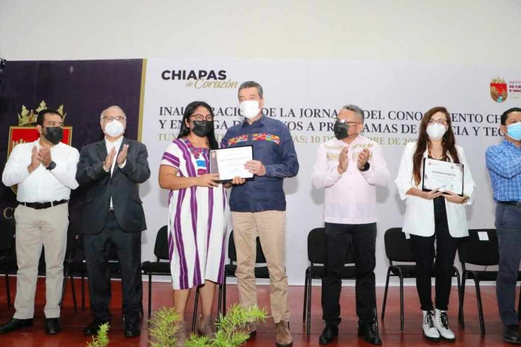 Al entregar reconocimientos e incentivos a investigadoras e investigadores, como parte del fomento al desarrollo de la investigación científica, el desarrollo tecnológico y la innovación, el gobernador Rutilio Escandón Cadenas sostuvo que su gobierno seguirá apoyando a la ciencia, porque constituye una herramienta fundamental para consolidar proyectos de alto impacto social, que abonan al bienestar, progreso y crecimiento del índice de desarrollo humano de los pueblos y las comunidades de Chiapas y de México.