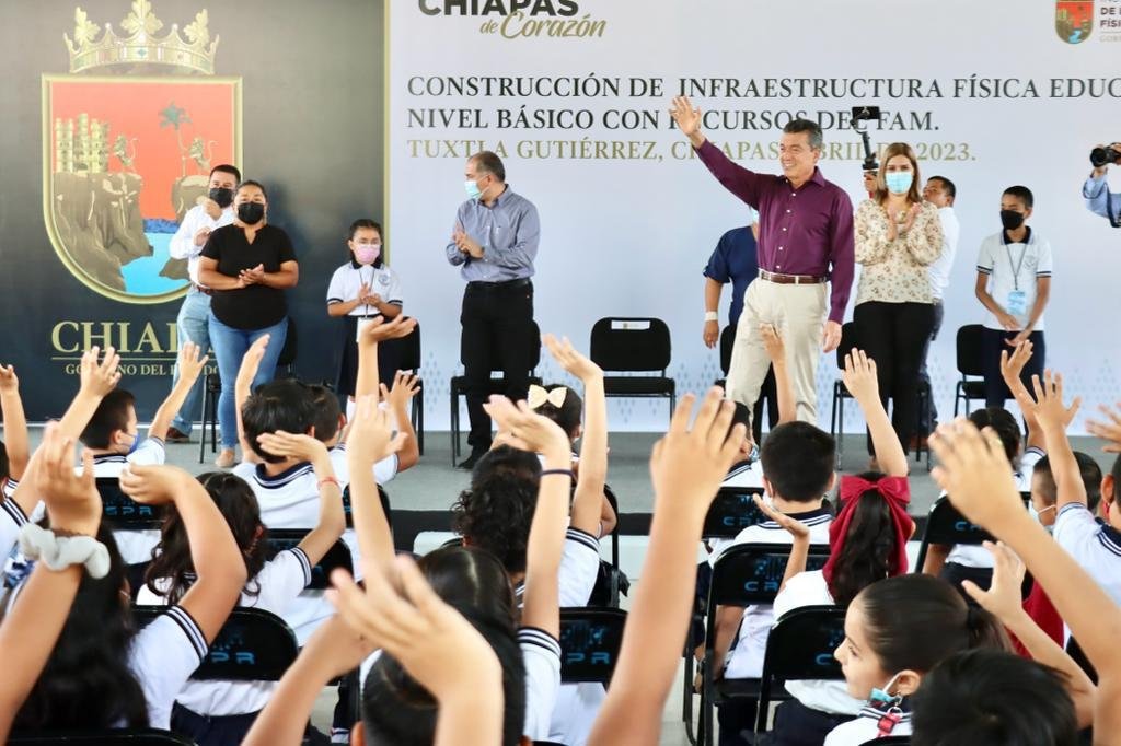 Al inaugurar la construcción de infraestructura educativa en la escuela primaria de la colonia Plan de Ayala Ampliación Sur, de Tuxtla Gutiérrez, el gobernador Rutilio Escandón Cadenas sostuvo que se invierte para atender las necesidades prioritarias en materia de educación, con el objetivo de que la niñez y la juventud chiapaneca puedan estar mejor preparadas para cumplir sus sueños y legítimas aspiraciones.