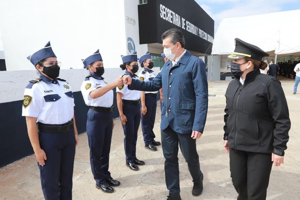 Tuxtla Gutiérrez, Chiapas.- Más de 32 mil 100 uniformes y 281 patrullas han sido entregados para fortalecer el cuerpo de la policía chiapaneca, además de la capacitación y profesionalización de más de 34 mil elementos policiales, con lo que la Transformación se ve, de la mano de Rutilio Escandón.