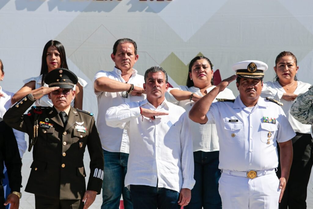 La ceremonia contó con la participación de representantes de la Secretaría de Marina y la Guardia Nacional, quienes reafirmaron su compromiso con la seguridad y el bienestar del país. Además, miembros del gabinete municipal se unieron a esta celebración, mostrando unidad en torno a los principios constitucionales. También participaron entusiastas alumnos de las escuelas Secundaria Federal II y Preparatoria 2.