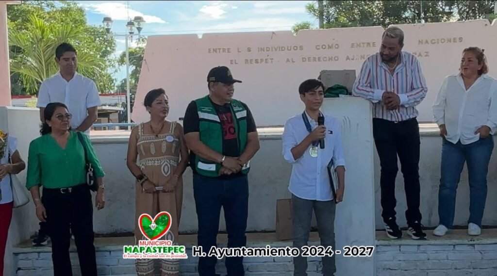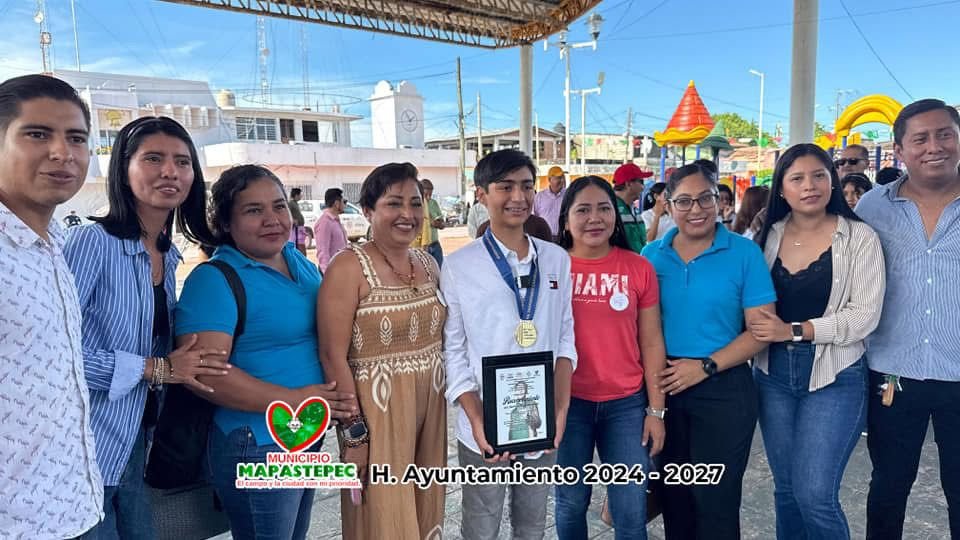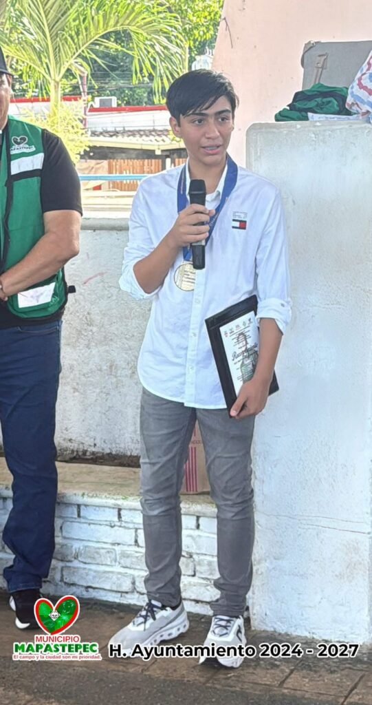 El reconocimiento fue entregado por el Presidente Municipal, C. Amando Espinosa Cruz, quien, acompañado por integrantes del Cabildo, la Presidenta del DIF Municipal, C. Maribel Flores Ramos, y el Director de Deportes Municipal, LEF Raúl Sebastián Romero Flores, expresó su orgullo por los logros del joven deportista. Destacó la importancia de seguir impulsando a la juventud mapaneca que, con disciplina y apoyo familiar, logra poner en alto el nombre de Mapastepec y de Chiapas.