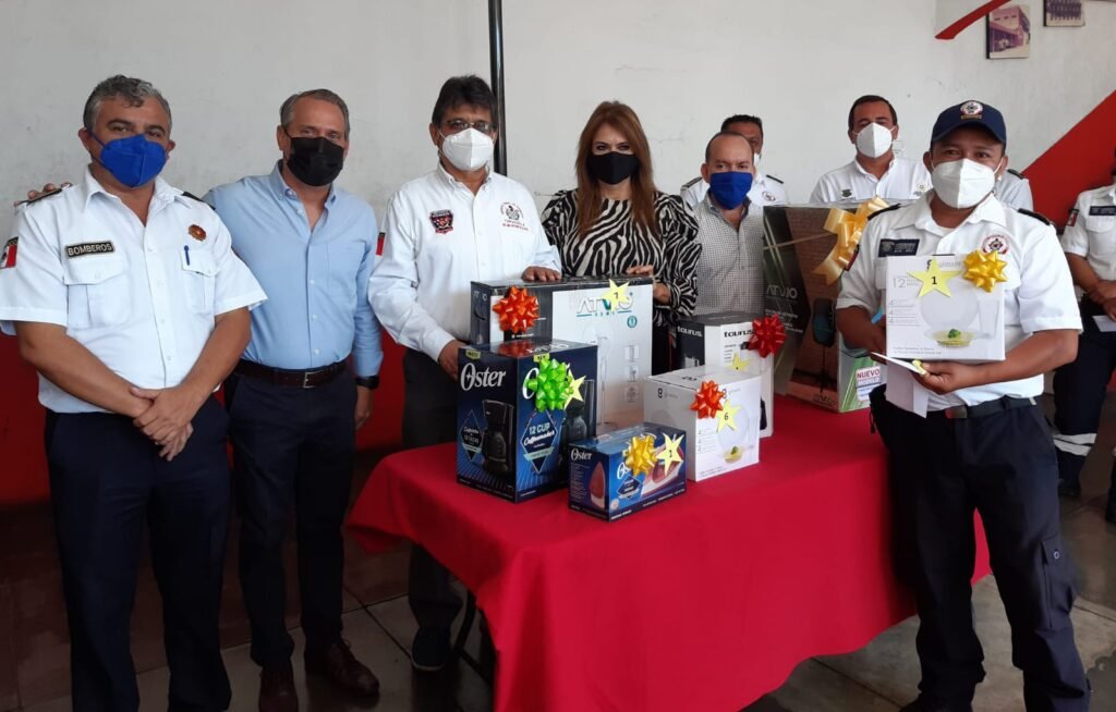 Estuvieron presentes el Director de Protección Civil Municipal, Herbert Schroeder Bejarano, los empresarios Alejandro Marín de la Torre, Clemente Miguel López Zepeda y la tesorera municipal, Alma Rosa Cueto López, quienes atestiguaron la rifa de obsequios y guardaron un minuto de silencio en memoria de los bomberos caídos en cumplimiento de su deber.