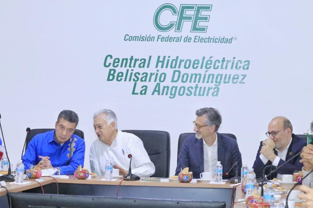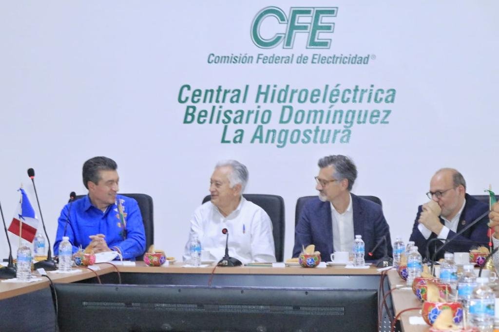 El gobernador Rutilio Escandón Cadenas acompañó al director general de la Comisión Federal de Electricidad (CFE), Manuel Bartlett Díaz; al embajador de Francia en México, Jean-Pierre Asvazadourian; y al director general del Grupo Agencia Francesa de Desarrollo (AFD), Rémy Rioux, al recorrido por la Central Hidroeléctrica La Angostura, para conocer el alcance del programa de modernización del parque hidroeléctrico de la CFE.